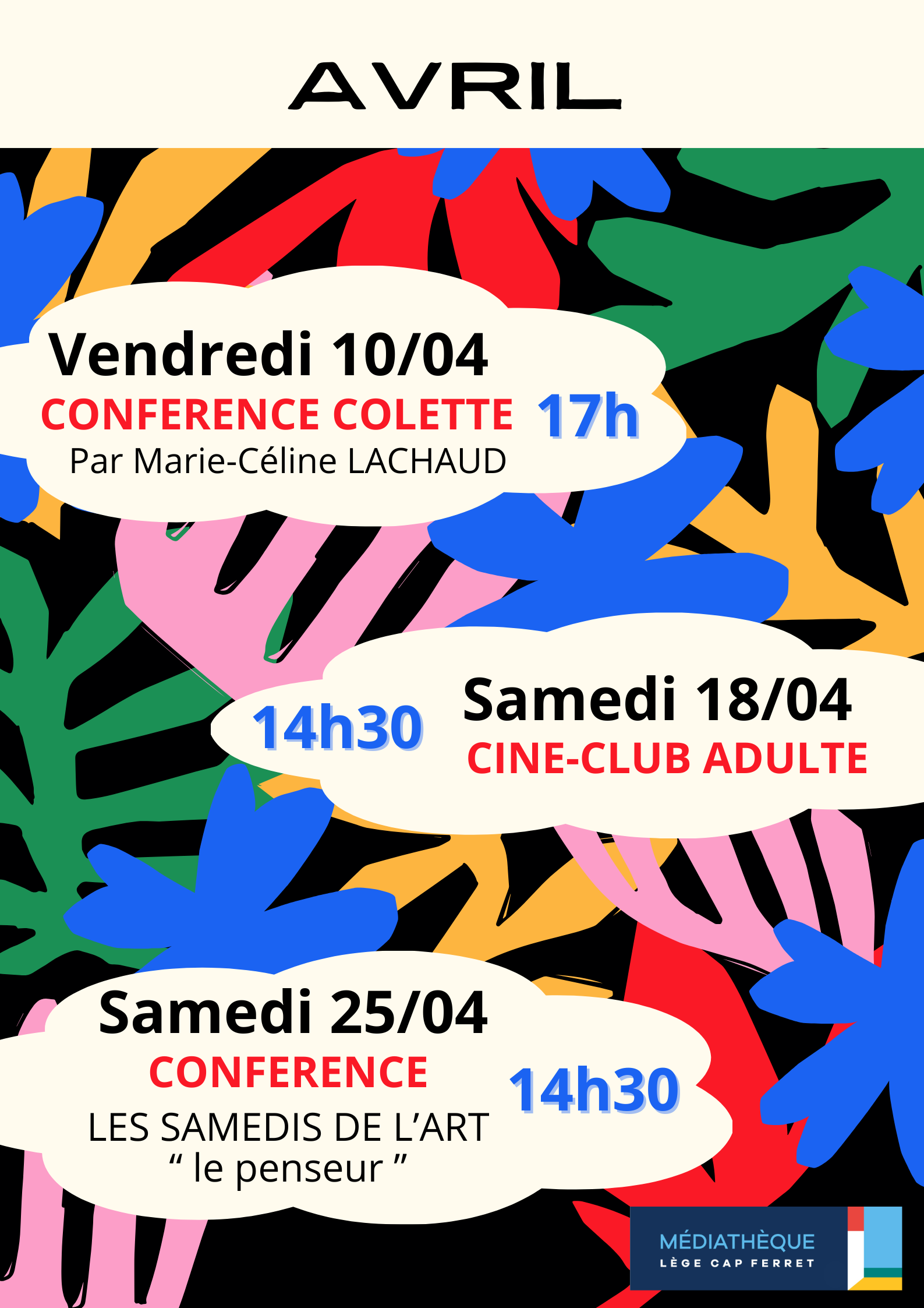 Retrouvez les événements organisés à la médiathèque de Lège-Cap Ferret au mois d'avril :
