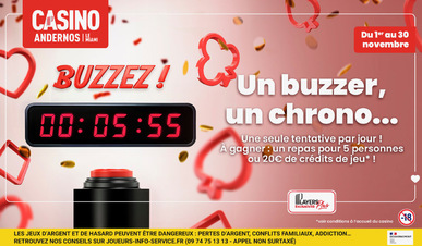 Le jeu du buzzer fait son grand retour pour tout le mois de novembre !Le principe est simple : un chrono et un buzzer. L’objectif est d’arrêter le chrono à 5,55s ou 1,23s.