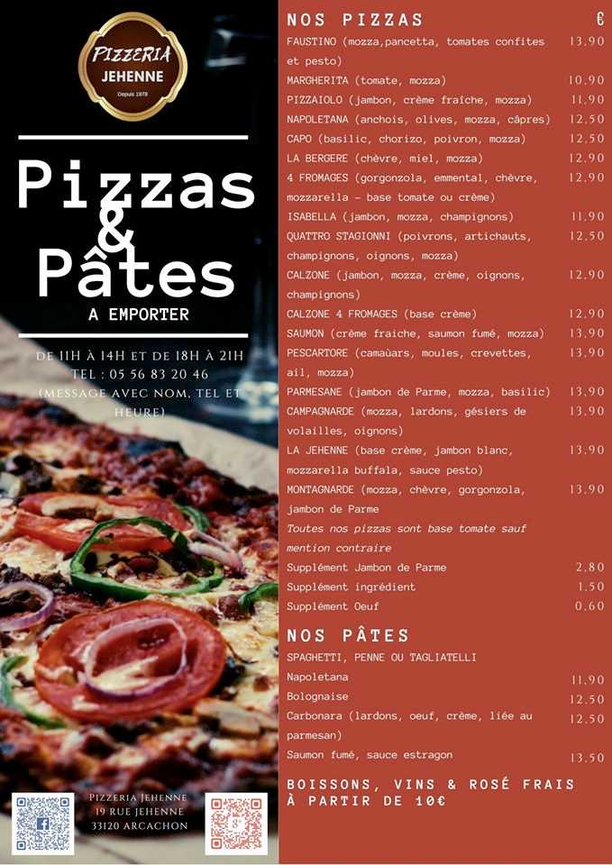 A emporter, toutes les saveurs de la Pizzéria Jehenne d'Arcachon